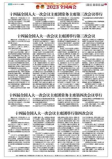 据新华社电 十四届全国人大一次会议主席团9日下午在北京人民大会堂举行第四次会议。
