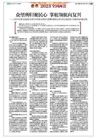从城市到农村,从沿海到边疆,广大干部群众一致认为,这是党心所向、民心所向、众望所归。大家表示,征程越是壮阔,目标越是远大,越需要核心的掌舵定向、真理的指引领航。我们要更加紧密地团结在以习近平同志为核心的党中央周围,坚持以习近平新时代中国特色社会主义思想为指导,顽强拼搏、团结奋斗,沿着中国式现代化这条康庄大道阔步前进。
