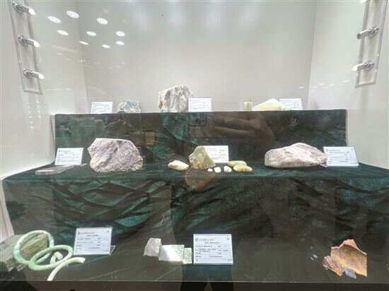 ■在中山大学地球科学与工程学院地质矿物博物馆里展示的闪石玉等。(潘玮倩/摄)