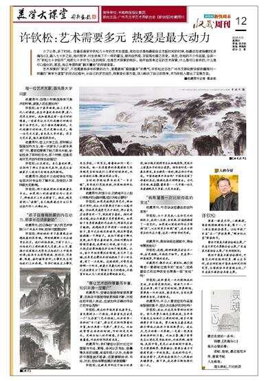 艺术探索的“变法”,不但需要有多年积累的功力,更需要有“推倒重来”的勇气,许钦松近日在广州市文联和新快报收藏周刊一同邀约“美学大课堂”的采访过程中,从自己的求艺经历,探索变化等方面,深入畅谈了自己的思考,并为年轻人提出了宝贵忠告。