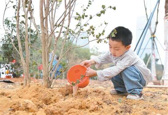 骆家小先生楚源则是个实干派,他最愿意干的还是默默浇水。“我们家孩子11岁,动手能力很强,喜欢捣鼓各种工具、拼积木等。两个孩子从没有一起种过树,这次都非常开心,从头到尾都很卖力。”骆女士说道。