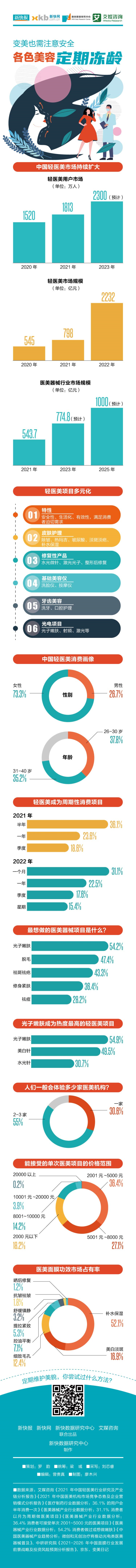 在高速增长的颜值经济背后,体现的是新一代消费群体对医美市场的旺盛需求。但不时出现的整形美容事故,让消费者开始追求更安全、有效、自然的美容服务,不用动刀、创伤小的微整形逐渐流行起来,越来越多的年轻人选择了轻医美。