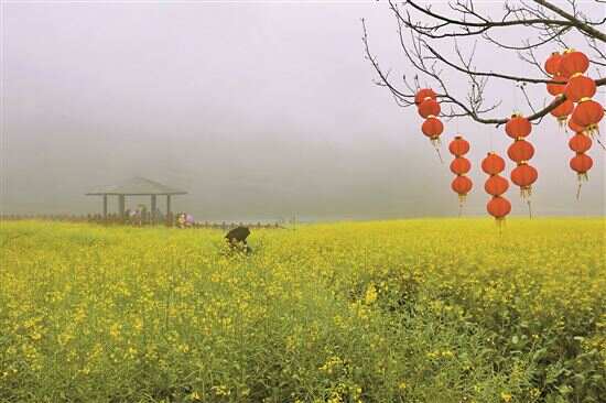 当下正是油菜花开的黄金时节,主会场安排在了景区内的“天池花海”景点中。活动当天,第十五届油菜花观赏节吸引了不少游客前来观赏油菜花景色。金黄的花海沿天池绵延两公里,花香扑鼻,虫燕徘徊。工作人员介绍,油菜花的花期到4月中旬,有花堪“赏”直须“赏”!