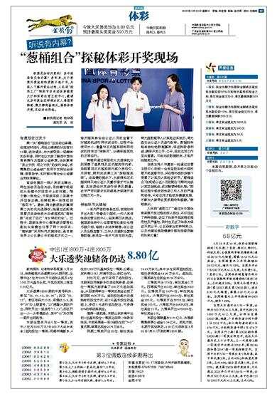 今晚大乐透奖池为8.80亿元 预计最高头奖奖金500万元