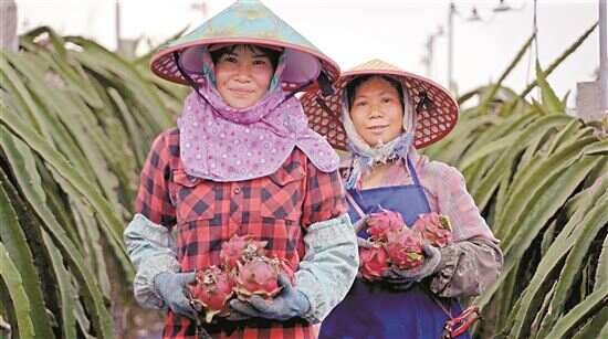 ■广西火龙果的走俏,不仅增加了种植户的收入,同时也有效利用了农产区的闲散劳动力,带动更大范围的农户增收。 马斌/摄