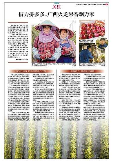 像陈英豪这样的一批批商家,同样是火龙果的“追光者”,他们通过新型电商平台这一束光,让火龙果走出广西,去往全国各地消费者手中。