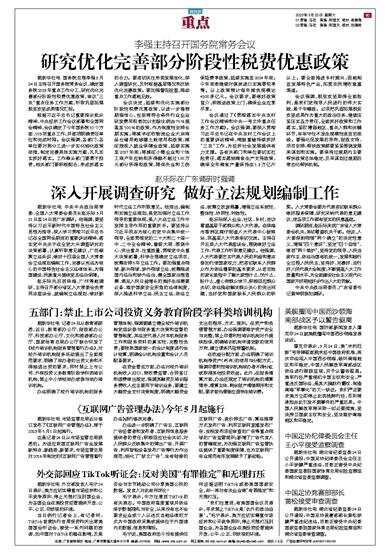 会议决定,延续和优化实施部分阶段性税费优惠政策,以进一步稳预期强信心,包括将符合条件行业企业研发费用税前加计扣除比例由75%提高至100%的政策,作为制度性安排长期实施;将减半征收物流企业大宗商品仓储用地城镇土地使用税政策、减征残疾人就业保障金政策,延续实施至2027年底;将减征小微企业和个体工商户年应纳税所得额不超过100万元部分所得税政策、降低失业和工伤保险费率政策,延续实施至2024年底;今年底前继续对煤炭进口实施零税率等。以上政策预计每年减负规模达4800多亿元。会议要求,要做好政策宣介,积极送政策上门,确保企业应享尽享。