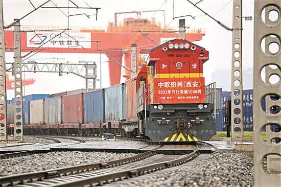 ■3月23日,X8489次中欧班列从西安国际港站驶出开往俄罗斯谢利亚季诺。