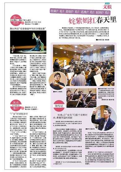 杜鸣:广交会之所以能做到60多年历久不衰,正是因为它的开放包容和不断地创新进步。我们在艺术创作上一定要体现它的这种兼收并蓄和不断进取的豁达胸怀。所以在音乐上,我们也采用了各种元素的音乐风格,体现岭南文化的包容性和多元性。事实上,不同的音乐风格和理念在这里碰撞和体现,年轻的演员(乐手)显示出很高的领会力,他们对新鲜的艺术元素和理念都很接受。