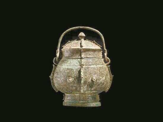 ◆◆商晚期青铜兽面纹提梁盖卣