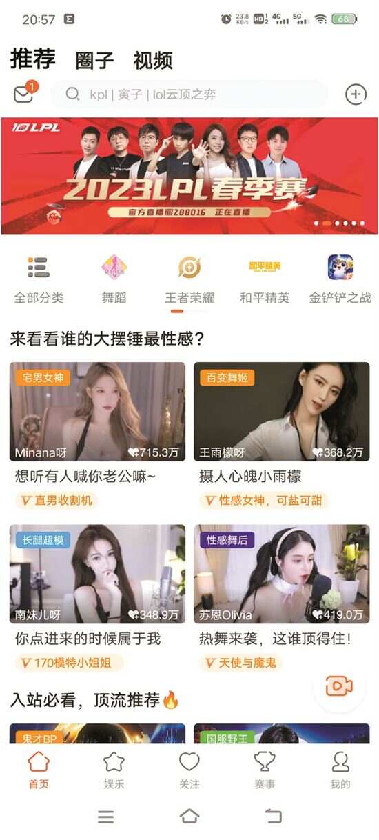 ■斗鱼直播App的首页推荐。