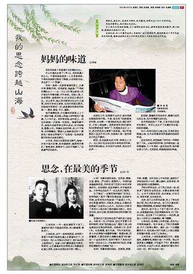 在报社工作,经常要外出采访,每次我都会跟她报告行程。于是,每当我飞机刚落地的时候,总会第一个接到她的电话,确认我平安,才放心地挂断。虽然家里收到的《新快报》经常都变成“晚报”了,但是她总会订上一份,然后把我的文章剪下来保留。很少听她跟别人说儿子怎么样,但是她心里一直觉得自己的儿子最好。