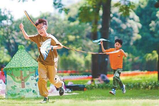 ■4月16日,孩子们在二沙岛的体育公园附近玩耍。 新快报记者 郭思杰/摄