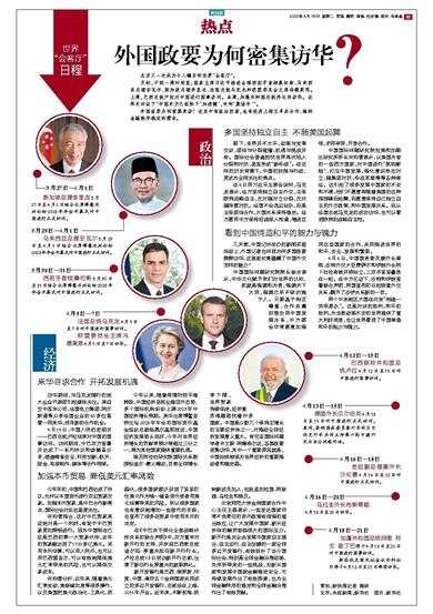 月初,不到一周时间里,国家主席习近平接连会晤西班牙首相桑切斯、马来西亚总理安瓦尔、新加坡总理李显龙、法国总统马克龙和欧盟委员会主席冯德莱恩。上周,巴西总统卢拉对中国进行国事访问。本周,加蓬共和国总统邦戈将访华。这再次印证了“中国外交已经按下‘加速键’,吹响‘集结号’”。