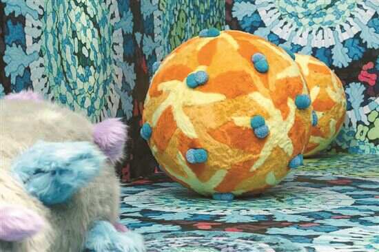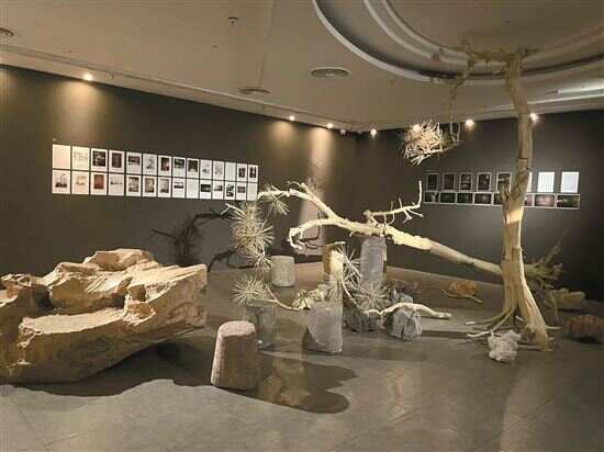 ■2023年4月6日,“想象另一种引力”展在北京今日美术馆举行,图为展出作品。