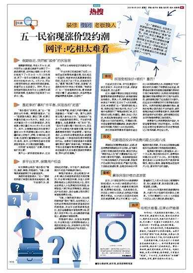 针对#五一民宿现涨价毁约潮#,人民网评写到,游客预订民宿,图的是玩得安心,孰料还没出去玩,先被无良民宿玩了一把,岂不糟心?变着法子让游客退订,无良民宿打的一手好算盘,这吃相太难看。