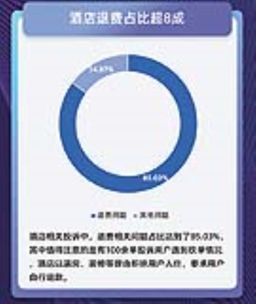 据黑猫大数据中心数据显示,近一个月以来,酒店相关投诉中,退费相关问题占比达到了85.03%。其中值得注意的是有100余单投诉用户遇到砍单情况,酒店以满房、装修等理由拒绝用户入住,要求用户自行退款。