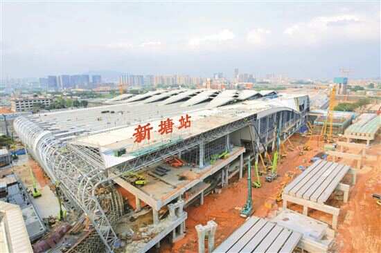 新快报讯 记者许力夫 通讯员李倩 艾伟报道 近日,崭新的“新塘站”三字在施工现场正式亮相,标志着新塘站施工进入装饰装修阶段。
