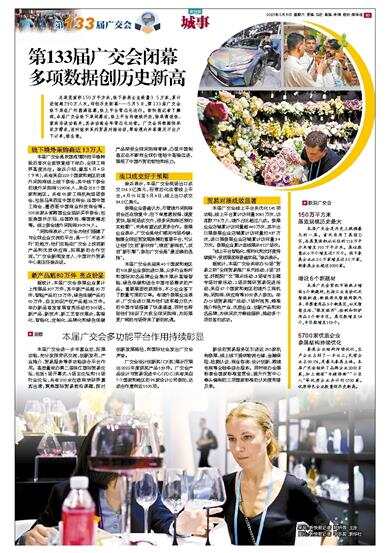 总展览面积150万平方米,线下参展企业数量3.5万家,累计进馆超290万人次,均创历史新高……5月5日,第133届广交会线下展在广州圆满落幕,线上平台常态化运行。新快报记者了解到,本届广交会线下展闭幕后,线上平台将继续开放,除展商连线、预约洽谈功能外,其余功能全年常态化运营。广交会将根据供采双方需求,适时组织系列贸易对接活动,帮助境内外客商足不出户下订单,做生意。