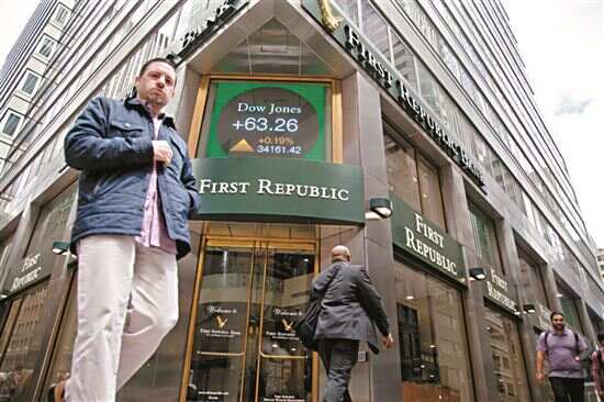 ■5月1日,在美国纽约,行人从一家第一共和银行前走过。