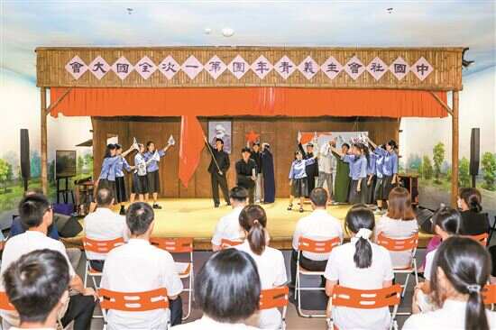 ■在新团员入团仪式上,白云艺术中学的学生表演了话剧《启航》。