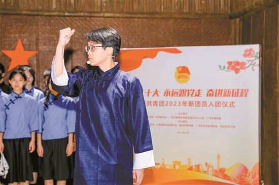 新快报讯 记者毛毛雨报道 5月6日,由共青团广州市委员会、广州市精神文明建设委员会办公室、广州市教育局主办的“学习二十大、永远跟党走、奋进新征程”广州共青团2023年新团员入团仪式在团一大纪念馆举行,30名新团员代表庄严宣誓,加入中国共产主义青年团。