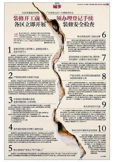 近期,哈尔滨松北区一居民楼租户擅自拆改房屋承重墙导致房屋出现严重安全隐患,广州市个别地区也出现了类似事件,教训深刻。5月12日,广州市住房和城乡建设局在官网挂出了《关于加强住宅室内装饰装修安全管理工作的紧急通知》(下称“通知”),出台十大措施,切实保障住宅室内装饰装修质量安全和居住安全。