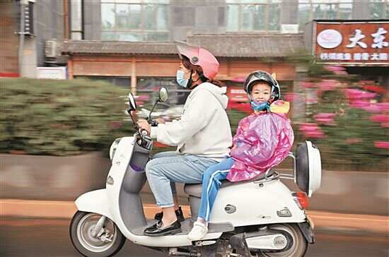 ■放学后王鸽骑车带女儿赵懿菲回家。