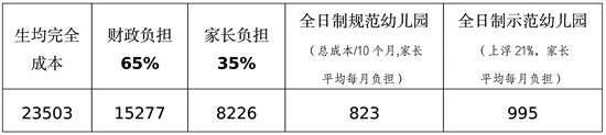 ■方案一:按“财政负担65%、家长负担35%”制定公办全日制规范幼儿园保教费标准为823元/月,公办全日制示范幼儿园保教费标准在此基础上上浮21%,标准为995元/月。公办寄宿制幼儿园保教费标准在全日制收费标准上上浮30%。
