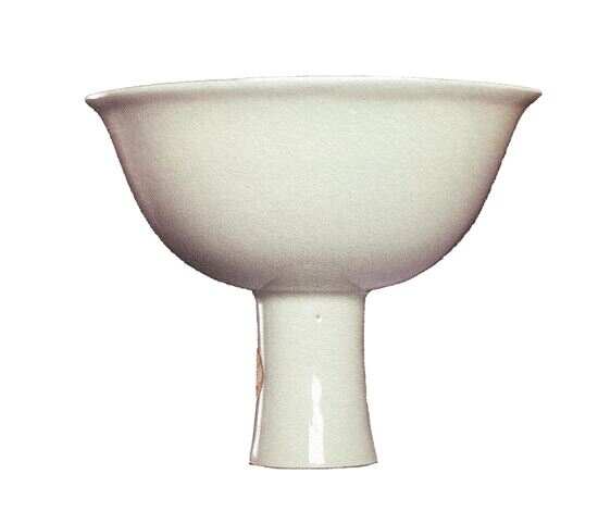 ■明永乐甜白釉暗花双龙赶珠纹高足碗