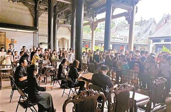 ■观众在广东民间工艺博物馆内聚贤堂欣赏广东音乐表演。