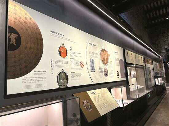 走进“何家祠道”门内,首先映入眼帘的是一处空旷的小广场,照壁浮雕上“岭南金融博物馆”几个金色字在大红底色的衬托下十分抢眼,转过身来,“月影追灯影 书声夺市声”的对联便伴着“庐江书院”一同抢入眼帘,而这里,如今也是作为岭南金融博物馆的前厅入口。按七大主题布局的参观路线游走在旧时书院祠堂里,从秦始皇统一天下颁行的半两铜钱开始,你便沉浸在建筑面积2300平方米的金融海洋中汲取大小“浪花”。