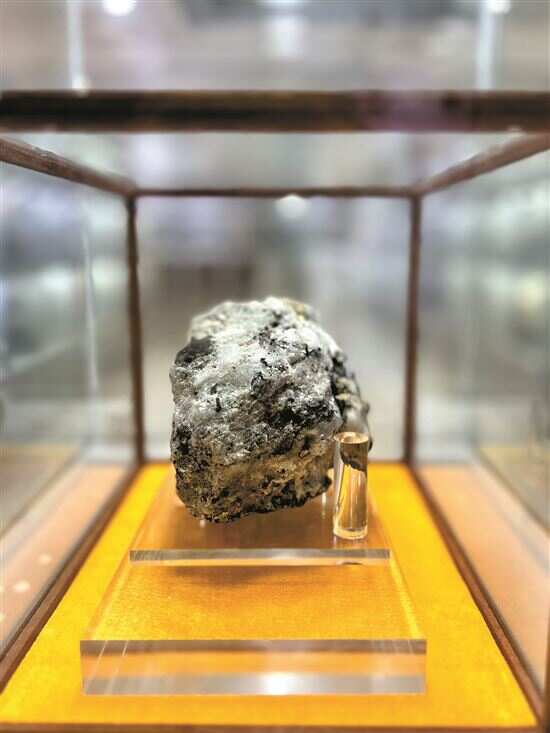 比如那枚静卧在玻璃匣子当中的香花石,一般人恐怕听都没听过这种矿物,这是中国地质学家发现的第一种世界新矿物,以发现地湖南省香花岭命名为“香花石”,分布在黑鳞云母中,属极罕见品种,类同于动物界大熊猫的国宝级地位,对中国地质学史和矿物学史都具有里程碑式的意义。