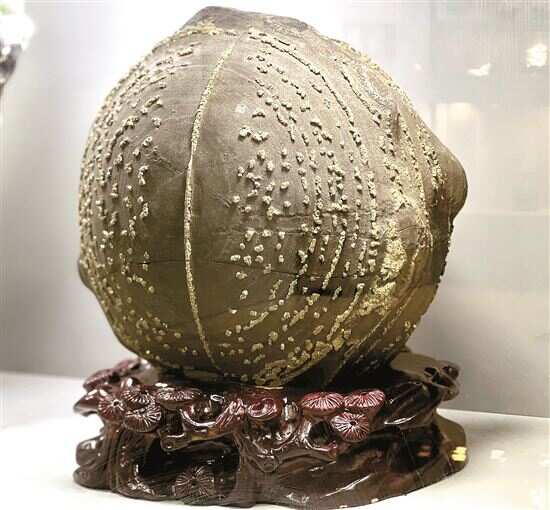再比如那枚“憨头憨脑”的铁胆石,“蹲”在置物架上看上去的确像某个内胆,它的主要成分是黄铁矿,因为颜色呈浅黄铜色和明亮的金属光泽,常被误认是黄金,因此有个别名叫“愚人金”,简直不要太形象。