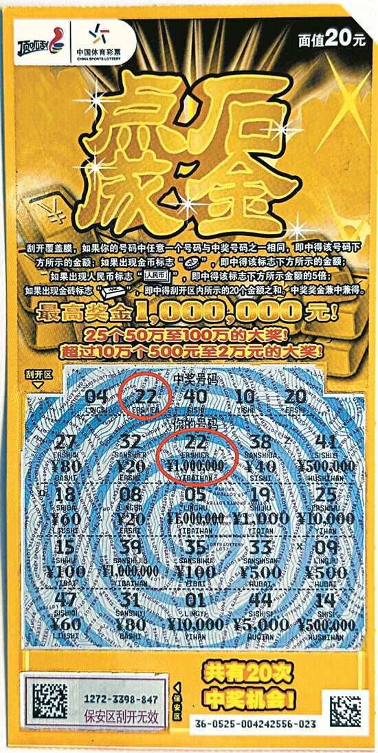 “当时心跳都加速了,20元刮中100万元,真是点石成‘金’了!”薛先生说道。