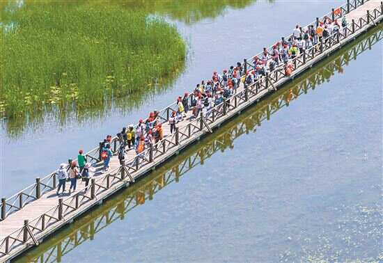 ■5月19日,游客在江苏省泰州市姜堰区溱湖国家湿地公园游览。