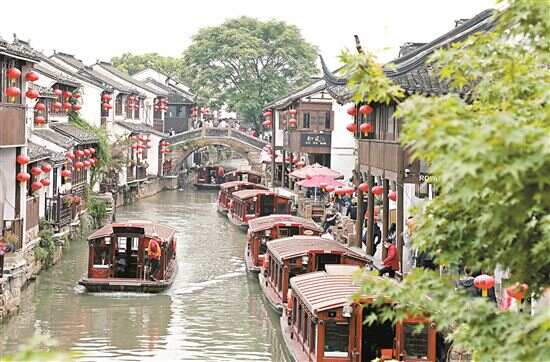 ■5月19日,游客在江苏苏州山塘古街观光游览。