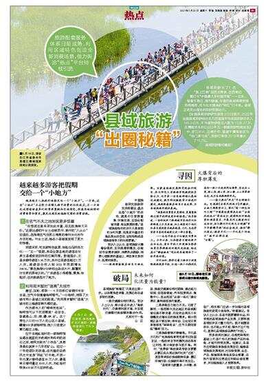 中国旅游研究院副研究员李雪说,盘点这些“小地方”的共性,就是不仅资源富集、环境优美,且综合配套完善、商业氛围浓厚。“县域旅游指向的并不只是美丽的乡村风景,而是其中蕴含的高品质生活空间,这恰恰构成县域旅游竞争力的内核要素。”
