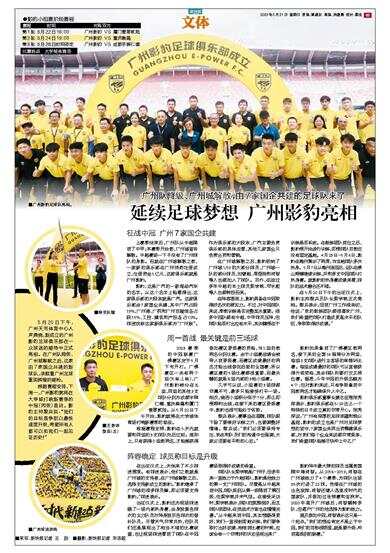 上赛季结束后,广州队从中超降到了中甲;本赛季开始前,广州城宣告解散。中超赛场一下子没有了广州球队的身影。而就在广州城解散之前,一家新的俱乐部在广州悄然注册成立,注册资金1亿元,这家俱乐部就是广州影豹。