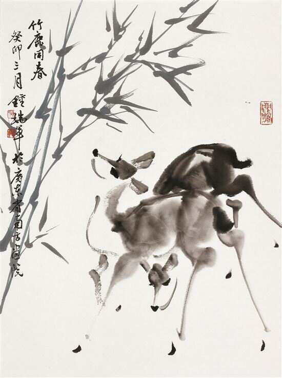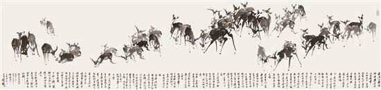 收藏周刊:美术史里,专门以某一动物作为主要表达题材的案例不少,例如徐悲鸿画马、黄胄画驴、齐白石画虾、李可染画牛……但专门画鹿的并不多见,这给您研究这个题材带来哪些难点?上述的其他画家对动物的表现有没有给您可借鉴的启发?