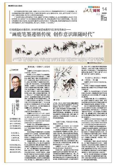 巨幅鹿题材长卷面世,钟瑞军接受收藏周刊记者专访表示——