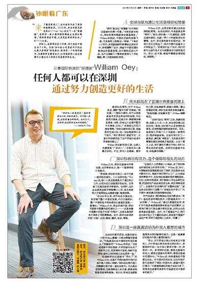 “深圳给人的感觉是一座非常有活力的、年轻的城市。对外国人来说,这里有着各种便利。总而言之,在深圳,我总有宾至如归的感觉。”——William Oey