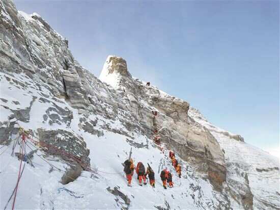 ■5月23日,2023年珠峰科考登顶队员在冲顶。当天12时30分许,13名队员成功登顶地球之巅珠穆朗玛峰。之后,他们将完成峰顶雪冰样品采集等重要科考任务。新华社发