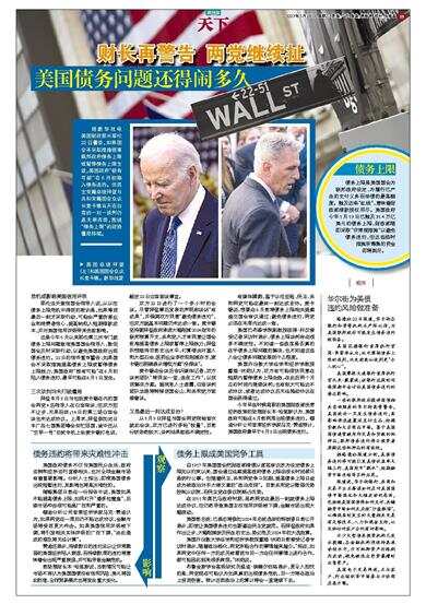 债务上限是美国国会为联邦政府设定、为履行已产生的支付义务而举债的最高额度。触及这条“红线”,意味着财政部借款授权用尽。美国政府今年1月19日已触及31.4万亿美元的债务上限,财政部随即采取“非常规措施”以避免债务违约,但这些临时措施所筹集的资金即将耗尽。