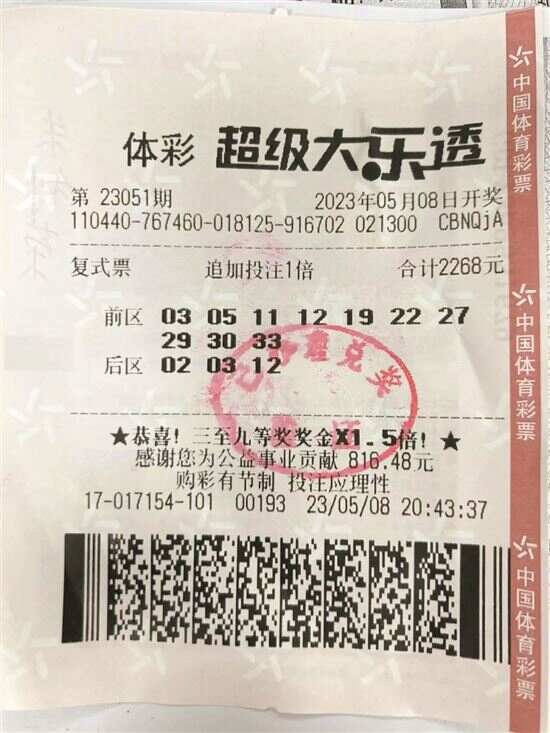 超级大乐透第23051期开奖中,1注一等奖花落东莞4417017154实体店,中奖彩票是一张“10+3”复式追加票。由于正值超级大乐透10亿元派奖期间,在派奖活动加持下,当期全国12注一等奖分享了本期1500万元一等奖派奖奖金,分享派奖奖金后单注总奖为1206万余元(含派奖奖金124万余元)。