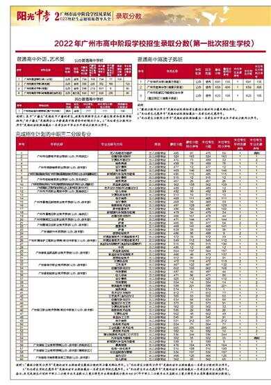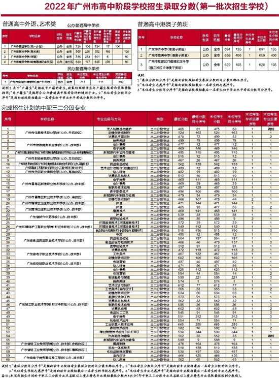 2022年广州市高中阶段学校招生录取分数(第一批次招生学校)