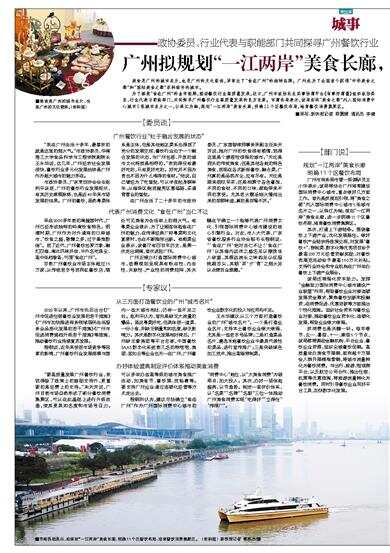 为了擦亮“食在广州”的金字招牌,推动餐饮行业高质量发展,近日,广州市政协民生实事协商平台《有事好商量》组织政协委员、行业代表与职能部门,共同探寻广州餐饮行业高质量发展的良方良策。市商务局表示,该局拟将“美食之都”列入国际消费中心城市5张城市名片之一,以珠江为轴,规划“一江两岸”美食长廊,明确11个区餐饮布局,培育餐饮消费集聚区。