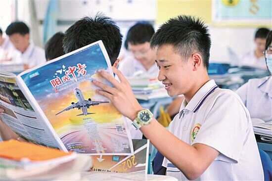“内容挺全面,也很实用,尤其是各年份分数表一目了然,方便我们‘对号入座’找学校。”“这个志愿填报小视频挺新颖的,我蛮喜欢!”5月29日下午,500本《阳光中考》如期送到华南师范大学附属中学,所有在校初三学生第一时间拿到了新鲜出炉的铜版纸中考特刊。权威全面的解读、丰富详实的内容、便阅易读的质感、多样创新的呈现,让初三学子们爱不释手。