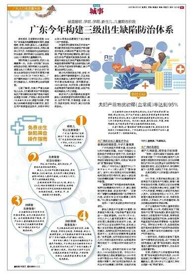 新快报讯 记者黎秋玲报道 2023年广东省基本构建覆盖城乡居民,涵盖婚前、孕前、孕期、新生儿、儿童期各阶段的三级出生缺陷防治体系,为群众提供公平可及、优质高效的出生缺陷综合防治服务,预防和减少出生缺陷,提高出生人口素质和儿童健康水平。