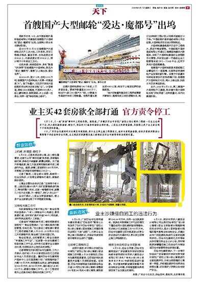 如此装修物业方面不制止吗?物业经理何志坚表示:“(有人)来物业中心沟通过,意思是要打通,当时我们是不知道(他们)用机械,当时和我说是用人工拆除。”